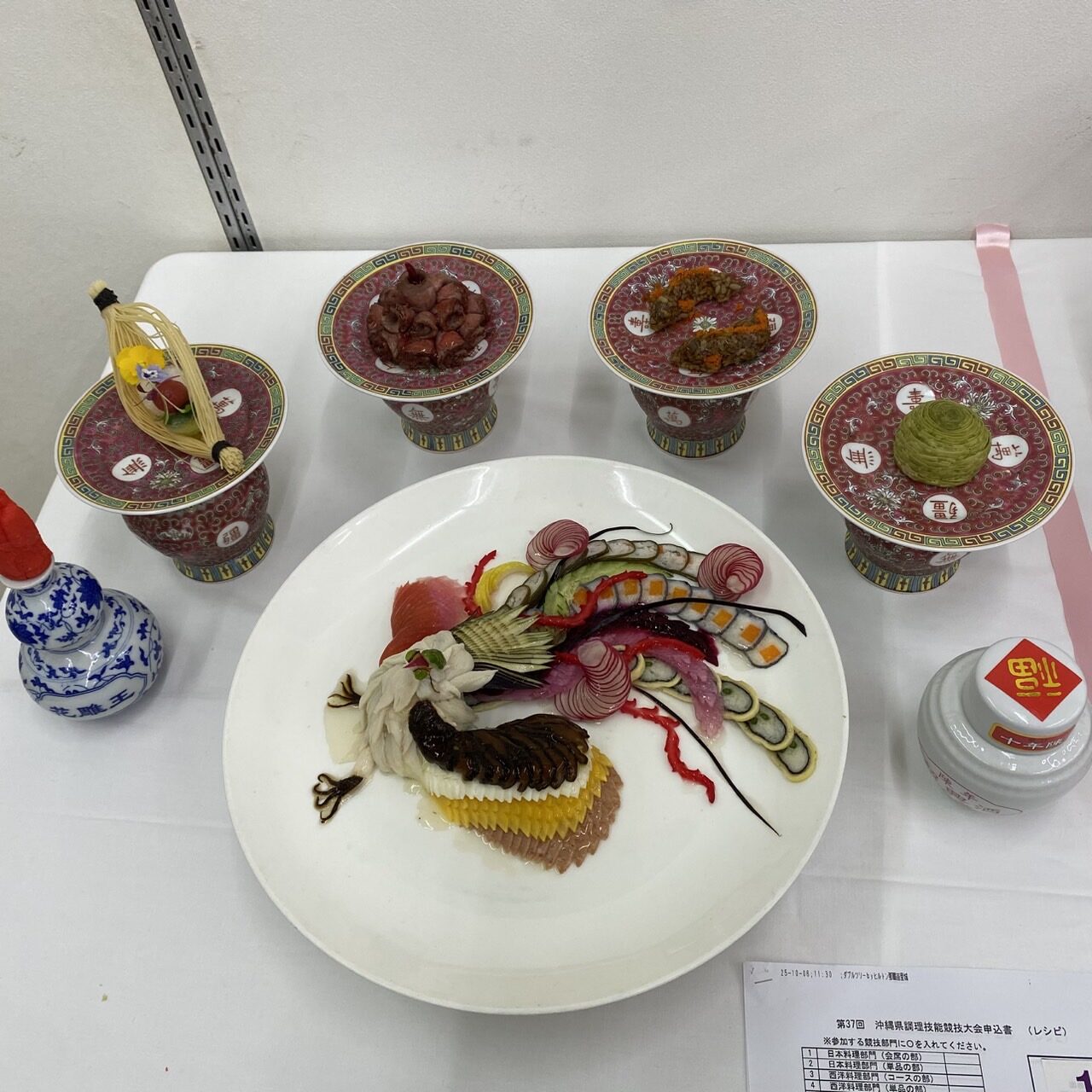 沖縄県調理技能競技大会にて「金賞」を受賞! 2025.11.05 イベントリポート 学校より 調理専門士科・調理師科 第37回 沖縄県調理技能競技大会の学生の部にて、調理師科 譜久島さんが「金賞」を受賞しました! おめでとうございます! 調理技能競技大会に参加した学生・卒業生の作品を紹介!!!